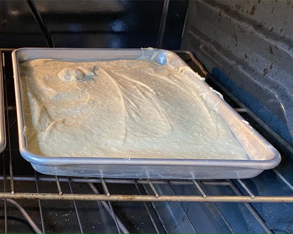 - Bake in a greased sheet pan for 25-30 min.
